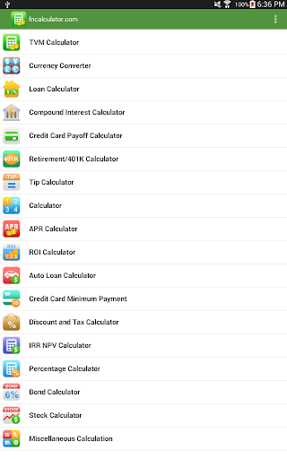 For phone and tablet this application includes the complete package of financial calculators by Bishinews a Google rated top developer: