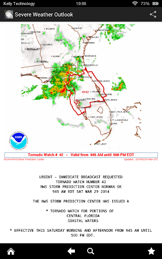 Weather from NOAA presents the latest weather and imagery from the National Oceanic and Atmospheric Administration. Included is the latest weather for the Atlantic Pacific and Indian oceans; animated satellite views of the entire world; images from the Environmental Visualization Laboratory; marine information from the NDBC; the worldwide ultraviolet index; the latest US severe weather alerts. The content can be shared by email and on any social media installed on the device. Data is courtesy of NOAA NASA and other sources where indicated.